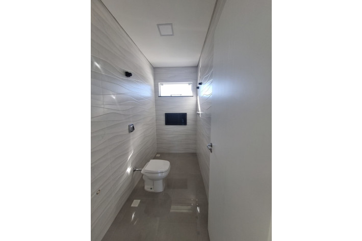 3 quartos, sendo 1 suíte, 2 banheiros, 1 lavabo, cozinha, sala de jantar e estar em ambientes integrados, lavanderia coberta, 2 vagas de garagem descoberta, quintal. Área livre com 90,00 m² CARACTERÍSTICAS DO IMÓVEL Acabamento em revestimento porcelanato; Laje nos dois pavimentos; Infraestrutura para instalação de ar condicionado em todos os ambientes; Infraestrutura para o aquecimento de água a gás; Sacadas em todos os dormitórios; Portas e janelas no pavimento superior o que melhora a ventilação dos ambientes; Tubulação elétrica e hidráulica preparada para uma ampliação futura dos fundos.